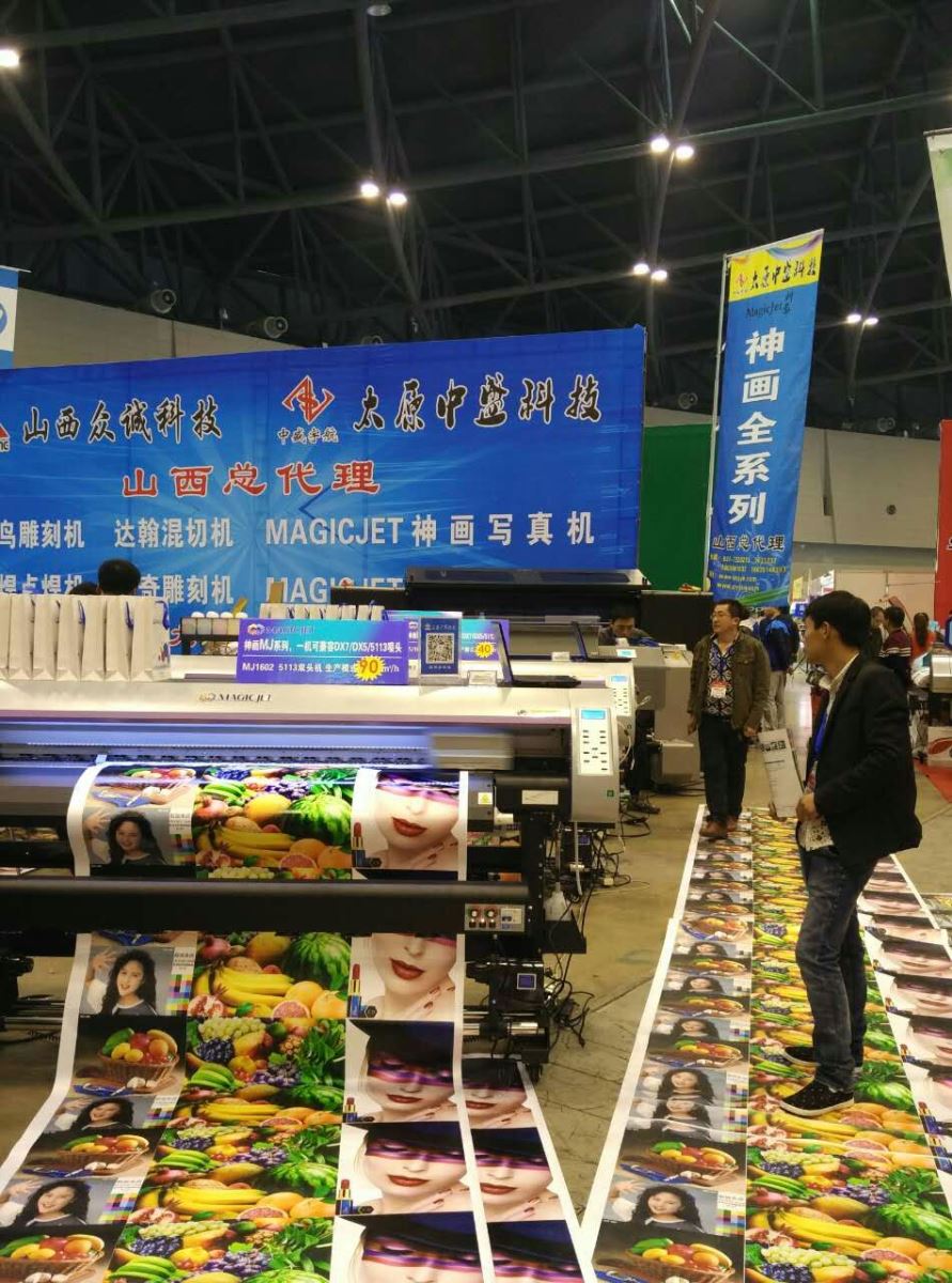 2016太原春季广告设备展,太原中盛科技展示的压电机有:神画SH1601系列DX5,MJ1602系列DX7,5113等