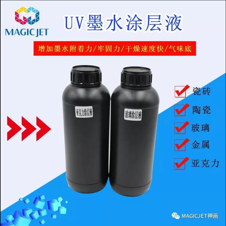 UV涂层液是由特种改性树脂及特殊的辅助材料精制而成或者为特种高分子材料精制而成,适用于玻璃、瓷砖、金属、三聚氰胺板、尼龙、PET、PVC、PC、ABS、石材等材质,其主要作用是增强UV打印图案附着力。具有干燥速度快、气味底、强耐水防水等性能。涂层是针对材质与墨水的,一种材质一种涂层,同时要考虑uv墨水的性能。