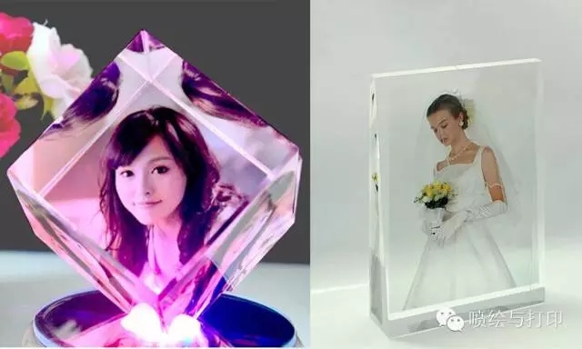 现在,UV平板打印机在水晶工艺品、标牌、牌匾方面也有很广泛的应用特别是在广告行业、婚庆行业,UV平板打印机凭借其打印白墨的特性,可以在透明的亚克力、水晶制品打印出漂亮的文字、图片。白色、彩色、白色三层墨水可以一次性打印到介质表面,既精简了工艺流程,又保证了打印效果。